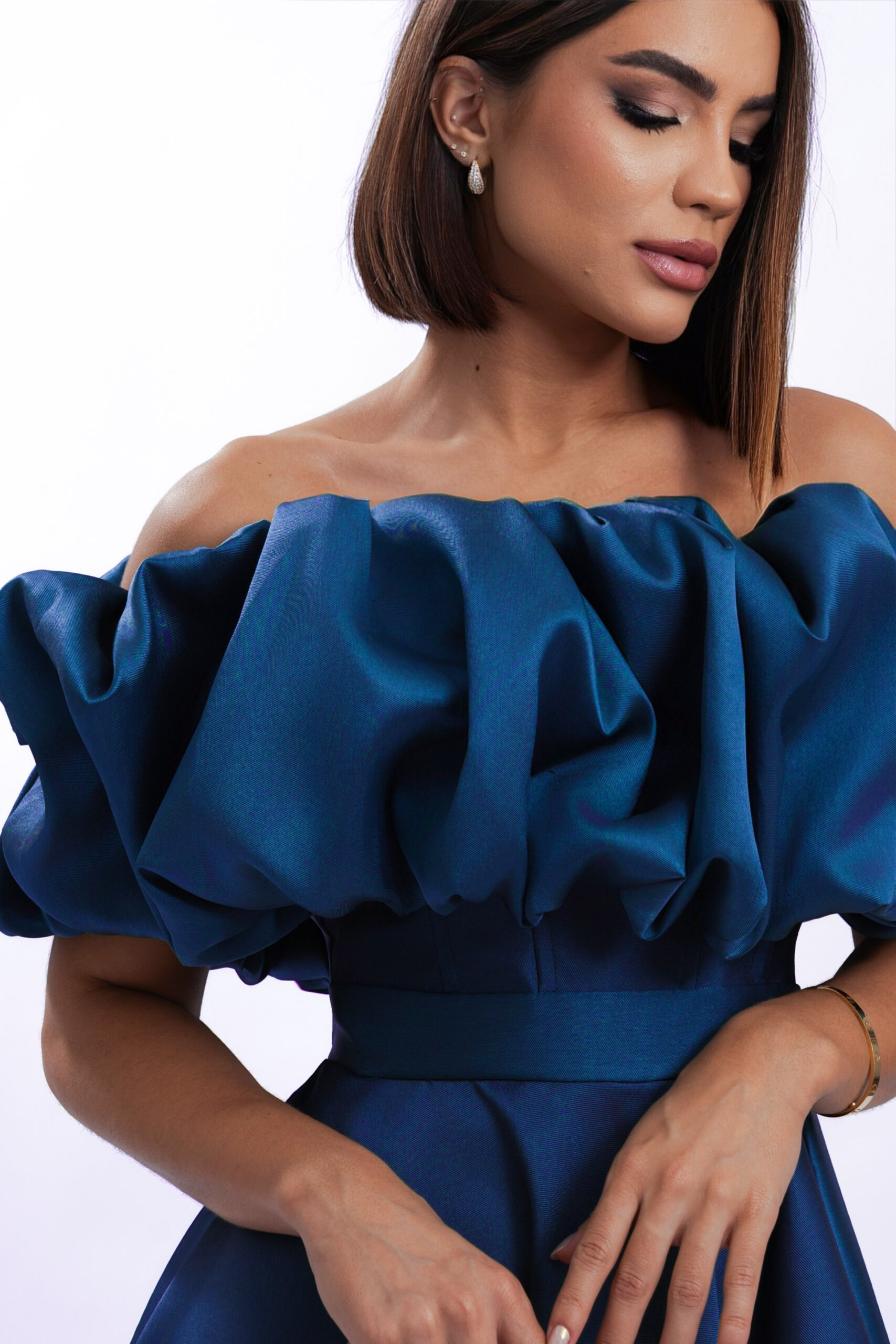 Ombro a ombro com detalhe `”bufante”, corpo estruturado e fenda. Perfeito para aquela ocasião especial.